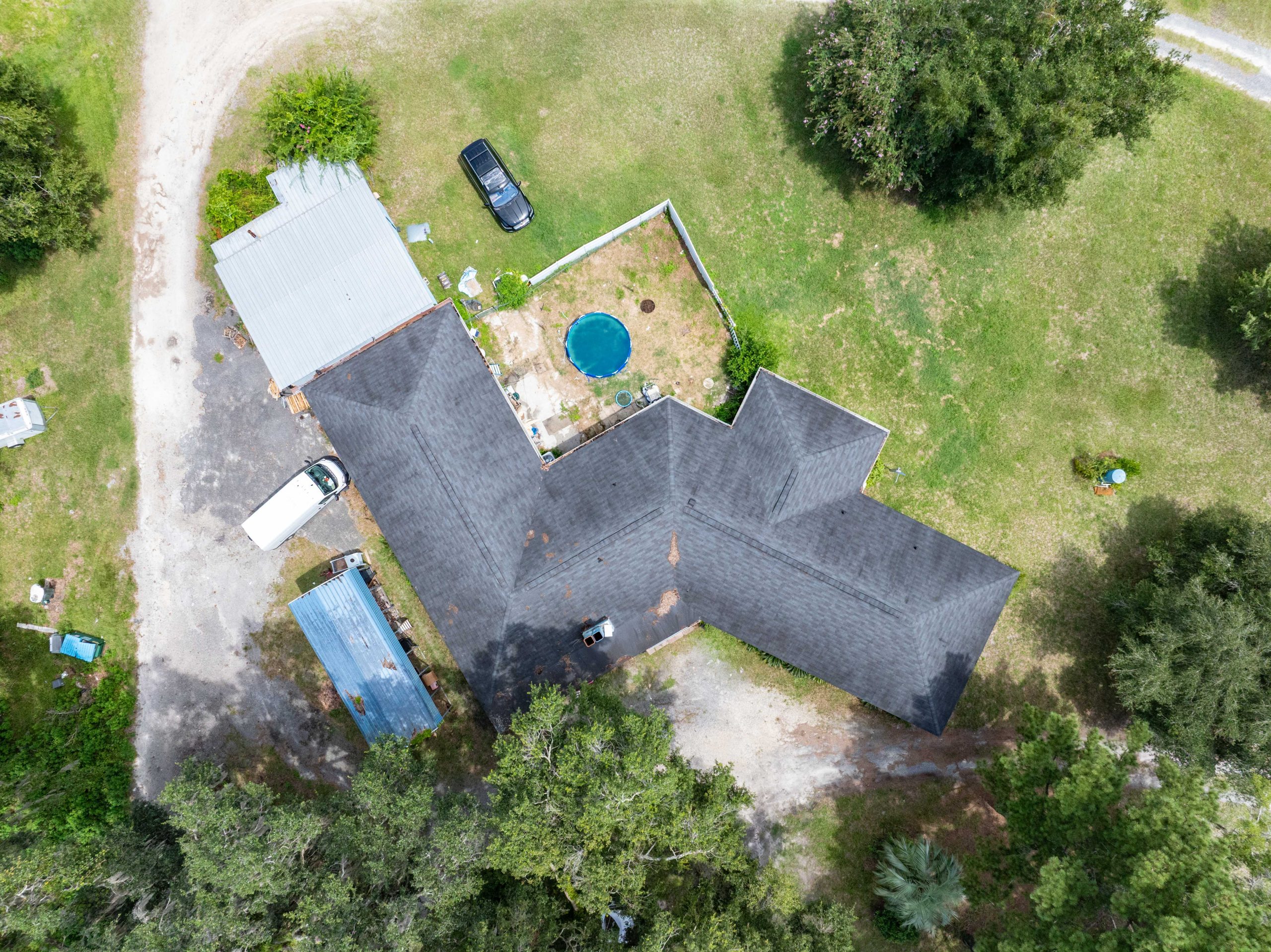 Rural residential property suitable for an automotive repair business on-site. The 6.26-ac. lot has partial fencing for horses, cows, or other farm animals. The 2,490-square-foot home features four bedrooms, two bathrooms, a den, a living room, an enclosed porch, and an upgraded kitchen with modern systems. Recent improvements include a new roof (2017), updated HVAC, remodeled bathrooms, and ceramic tile flooring throughout. In the rear yard is a 2,800-square-foot auto repair shop with a detached office. The shop includes recessed service lanes designed for wheel alignment and undercarriage inspections. A unique opportunity for a home business.